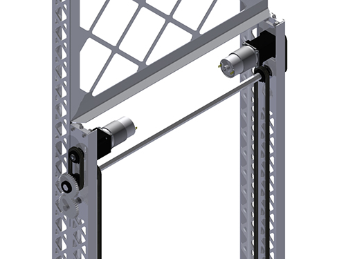 So we built a drive base that could fit all of our systems, which came out to be 32” x 41” x 77”. In order to make the robot fit into the transportation configuration, we put the entire elevator mechanism on a single pivot point attached 20” above the drive base so that it could be rotated perpendicular to its original position. Then the entire robot could be rotated up onto its nose so that its new dimensions were 27” x 32” x 77”. This meant that entire elevator had to be a single independent system that had a drive train independent of the drive base. To insure that the elevator stayed in the upright position while in competition mode, we used 2 small quick release clamps that clamped on to the bottom frame of the elevator holding it in place. In the final product it would only take about 5 seconds to unfold the elevator from transportation configuration.