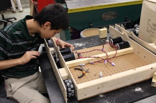 The elevator is a crucial part of any robot this year. We are trying to optimize it so that we can eliminate jams and also get a large number of balls to the shooter very quickly. The 3 channel timing belt elevator should allow us to organize the balls easily. Speed is going to be our biggest challenge. We are working on making sure that the balls are centered in their paths and that they exit the elevator into the shooter in a consistent manner each time.