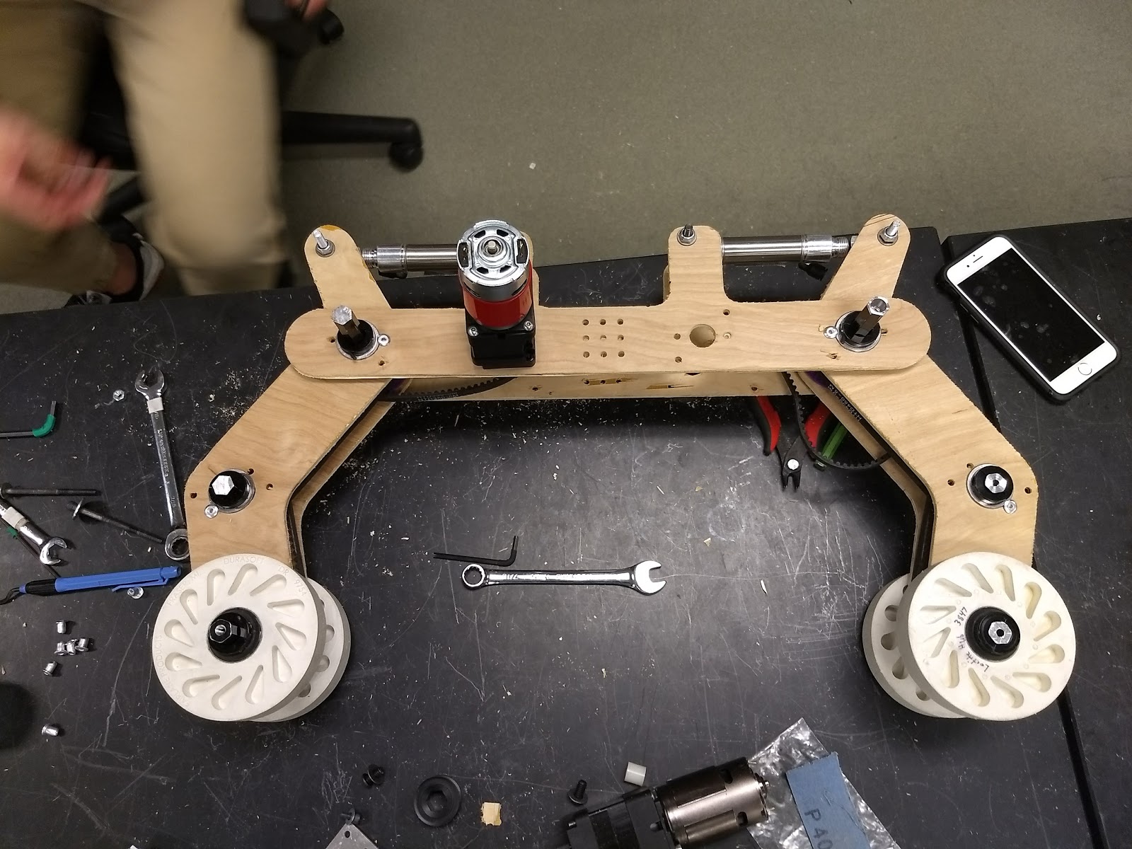 Wood is relatively easy to manufacture, being easy to CNC and especially quick to laser cut thin sheets of it. Several teams build prototype mechanisms using essentially only laser-cut wood, and quite a few make it to the competition field. Use of thin baltic birches and other common prototyping woods are ubiquitous, and Makerspaces are a prime candidate for help manufacturing woods. Because baltic birch tends to not splinter and cuts more evenly both on laser and CNC, it’s often preferred to run-of-the-mill plywood.