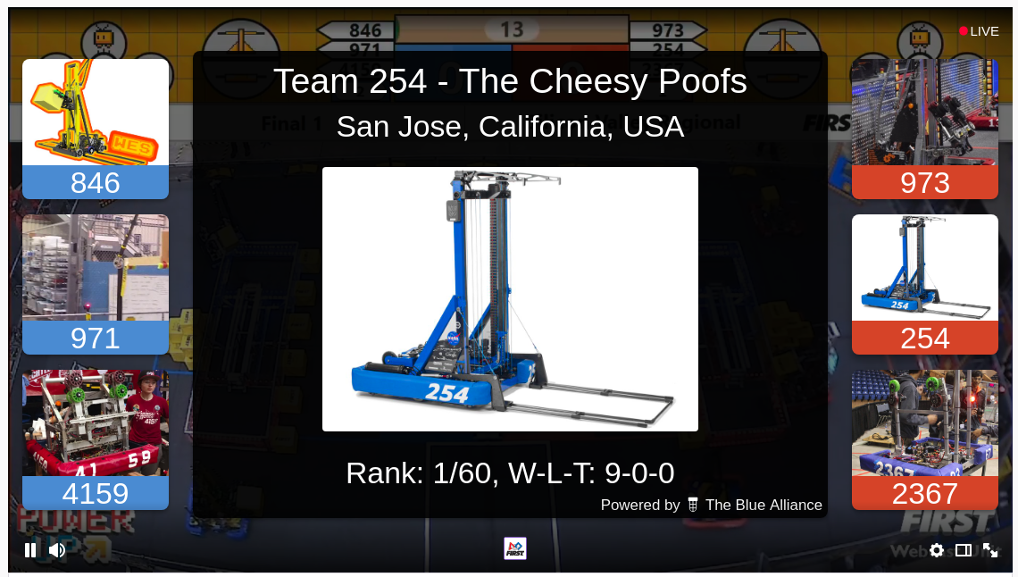 When enabled by the broadcaster, FRC Info provides a handy video overlay that shows event rankings and information about teams in the current match.
