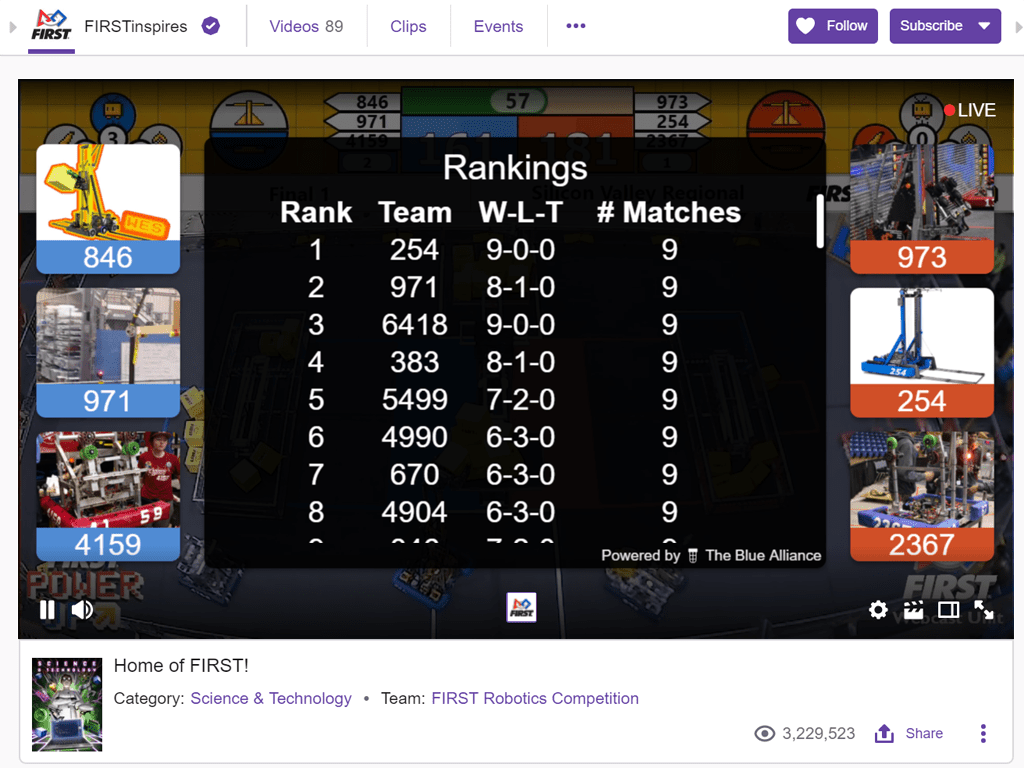 You can check out the extension on FIRST‘s Twitch channels. If you are a broadcaster, instructions on how to add the FRC Info extension to your stream can be found here.
