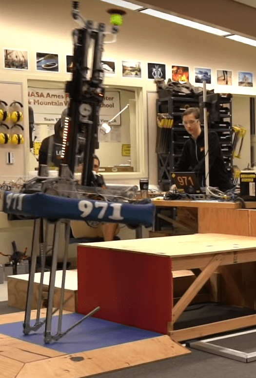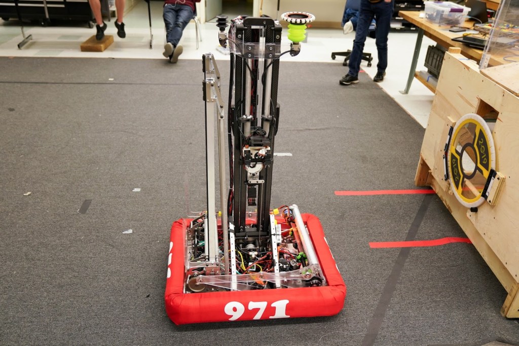 Team 971 had an uncharacteristically simple robot, or so people thought. Their robot was a well engineered, light, and nimble. Their suction mechanism on an armavator left them able to quickly and effectively score both game pieces before the dual-purpose wheeled hatch intake took over. In addition, they opened the competition season with a difficult to replicate and breaktaking collapsing fork foot design that left them with three regional titles this season, as well as both a regional and a divisional engineering award.