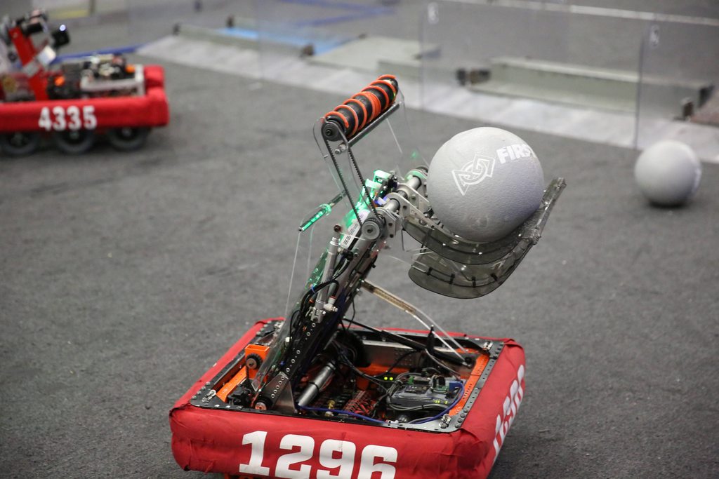 In the 2016 season, both 3310 and 1296 realized that being able to go under the low bar was an essential objective to getting the Rank Point objective, and as such designed to go under the low bar. At the same time though, both robots also took a minimalist approach to robot design, a photo of 1296 barely bigger than a boulder prominent in most Texans (and strategists) minds.